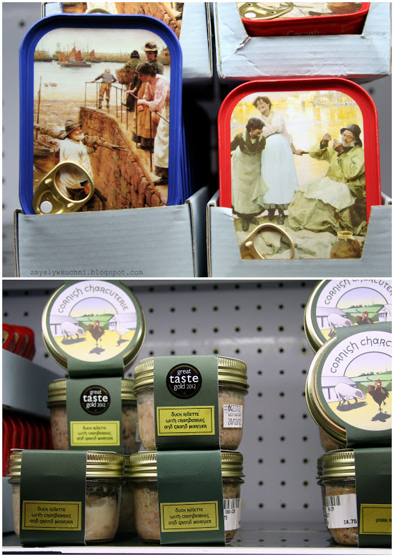 The only tea grown in United Kingdom is produced on the estate in Cornwall and it is called Tregothnan, if you are not keen to travel there you may as weel buy it at Eden Project. This tea is mainly producet to be exportet abroad so it makes it rare and valued in UK. At Eden Oroject I have spotted probably the most beautiful tin design! Local sardines in these great tins cought my eye, as well as duck rillettes. This was extremely good,made with duck, cranberries and Grand Marier and when I came back home and waslooking for some information about the producer Cornish Charcuterie I have found really enthusiastic review by Rick Stein saying how great this product is. Also in their gift shop there is a selection of famous  Cornish Sea Salts.
